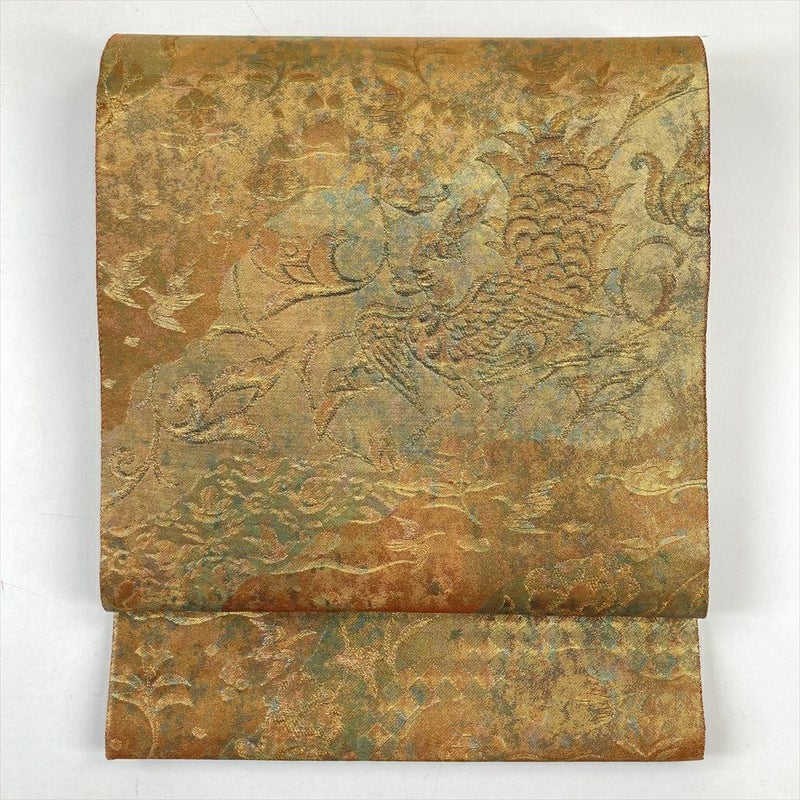 (中古)袋帯 金 フォーマル セミフォーマル 六通 金糸 切箔 道長取り 鳳凰 霊芝雲 蔓 花 オリエンタル