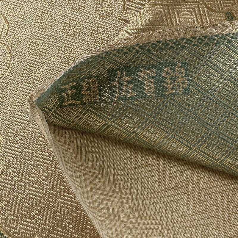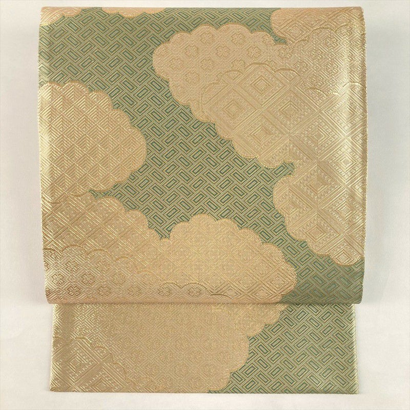 (中古)袋帯 金 セミフォーマル フォーマル 六通 未仕立て 佐賀錦 雲文 絹