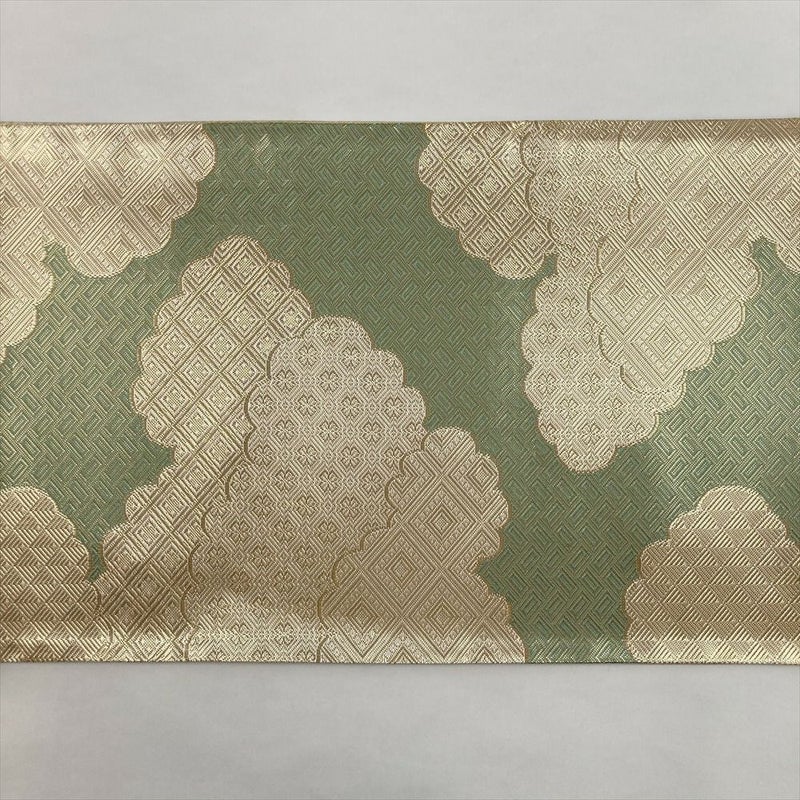 佐賀錦ならではの繊細な織りと、金と緑の彩りが美しく調和した「未仕立て」の袋帯。