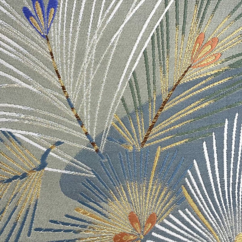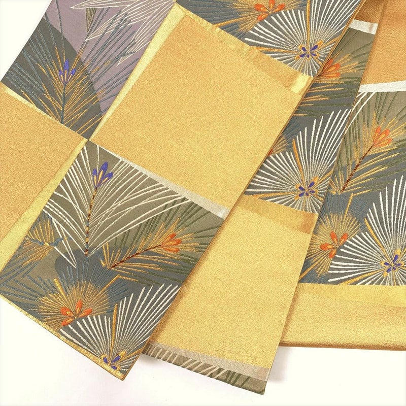 【色柄】金地 銀糸 市松取り 若松