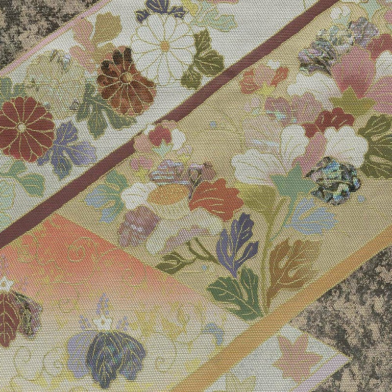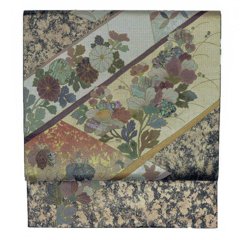 【色柄】深緑 金 熨斗 引き箔 螺鈿 花 露芝 七宝 霞 六通