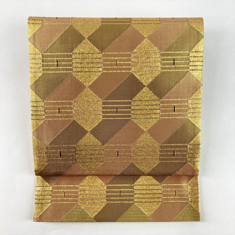 (中古)袋帯 金 セミフォーマル 六通 引き箔 モダン 抽象柄 絹