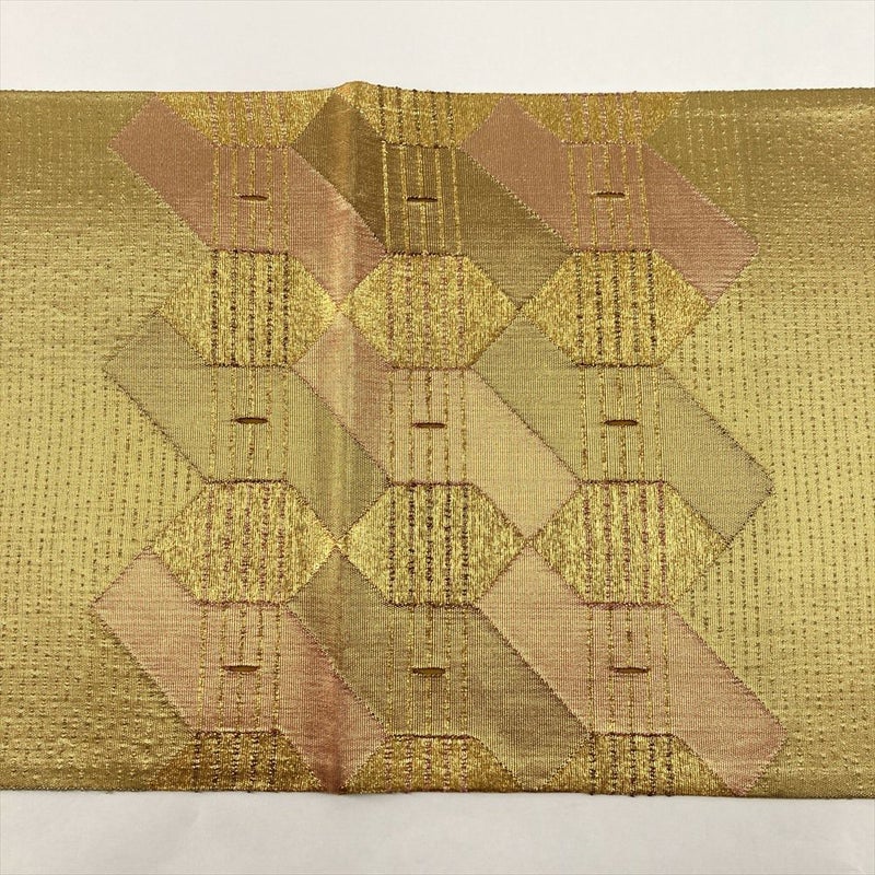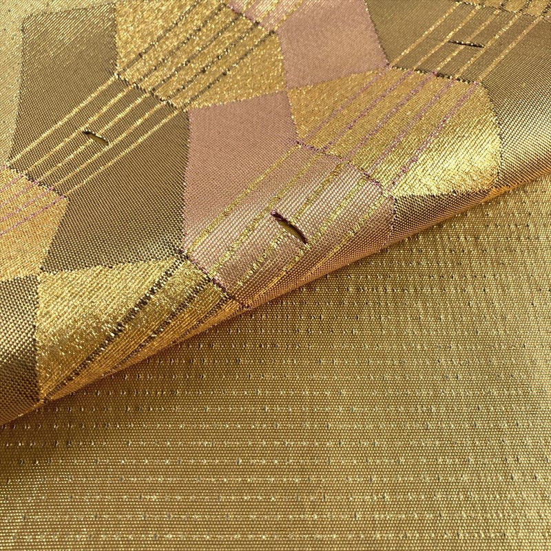 洗練された金色をベースに、抽象柄をあしらったモダンな袋帯です。