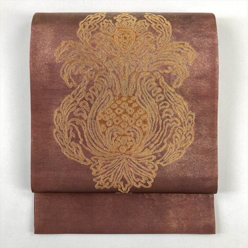 (中古)袋帯 茶 セミフォーマル カジュアル 六通 金糸 切箔 アールヌーボー