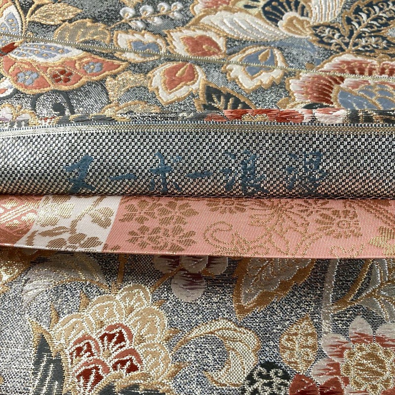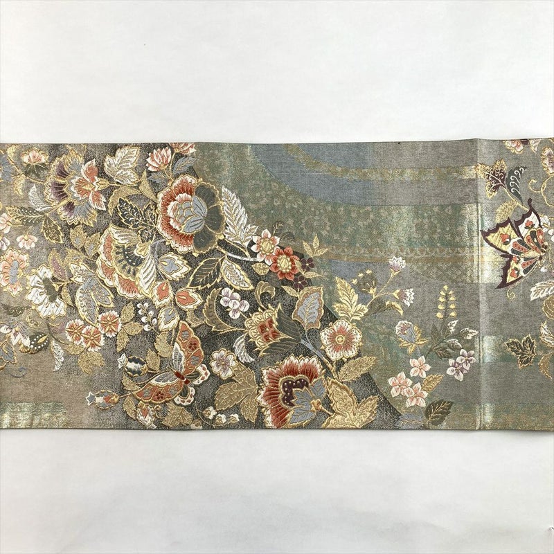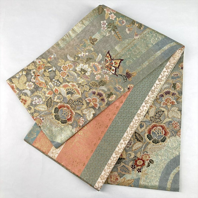 アール・ヌーヴォーの優美な曲線美を取り入れた、まさに「ヌーボー浪漫」と呼ぶにふさわしい花蝶文袋帯。
