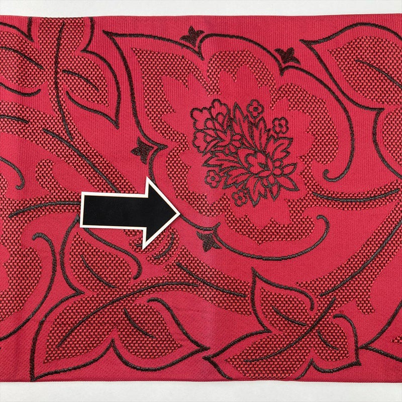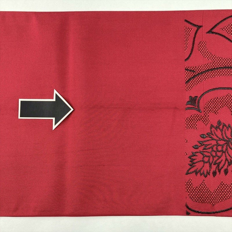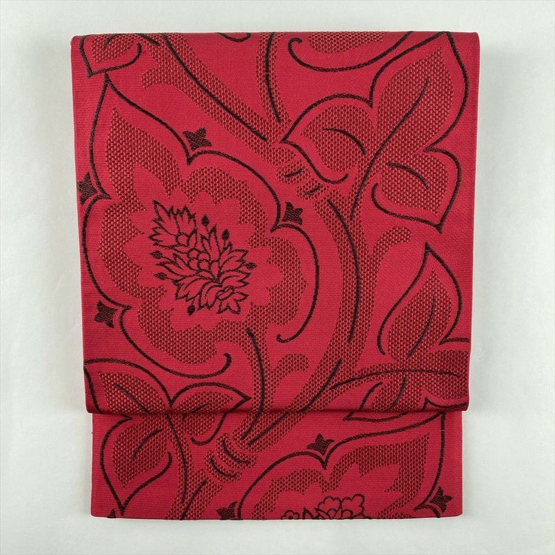 (中古)京袋帯 茜色 カジュアル セミフォーマル 六通 織り 花葉 絹