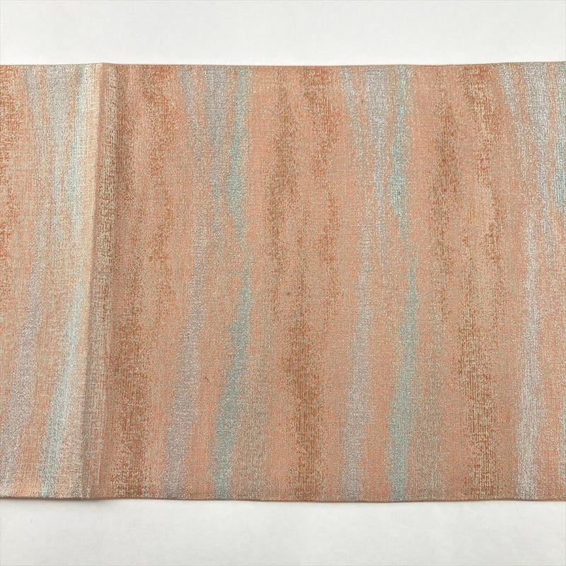 銀と珊瑚色のコントラストが美しい、華やかな京袋帯です。霞のような繊細なグラデーションが、帯周りを優雅に演出します。