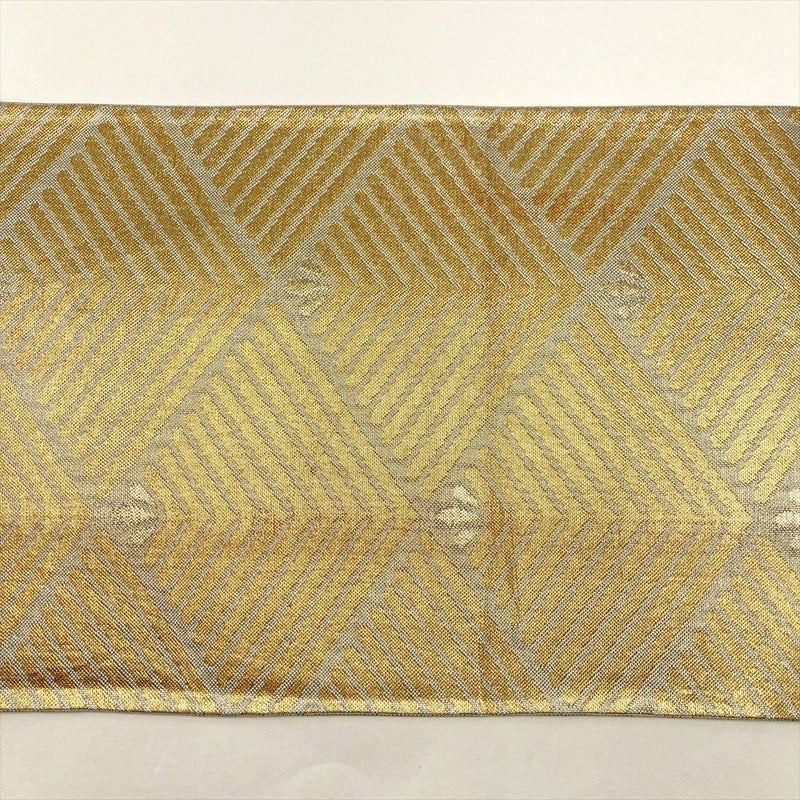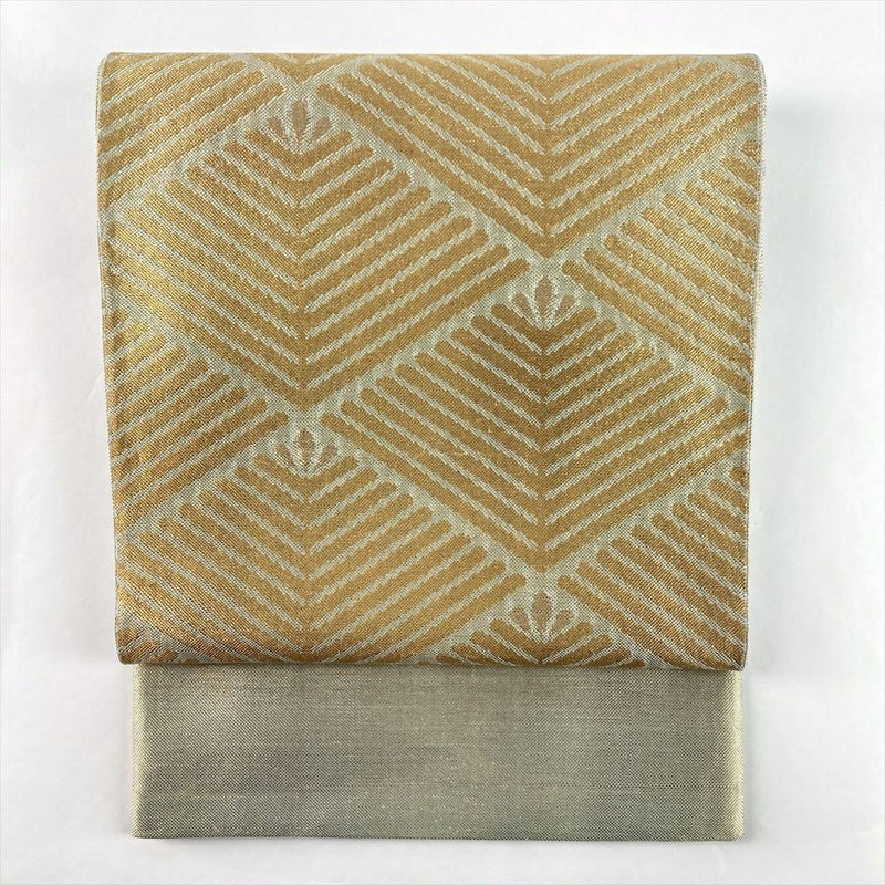 (中古)京袋帯 金 薄緑 セミフォーマル 六通 金糸 引き箔 松葉菱 絹