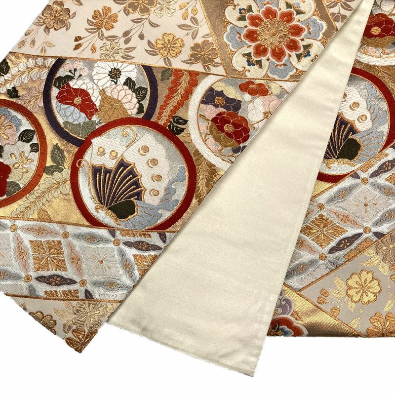フォーマル向きの帯になります。成人式・結婚式や披露宴・パーティーなどフォーマルのお席にお使いいただけます。お太鼓に糸浮きがあります。