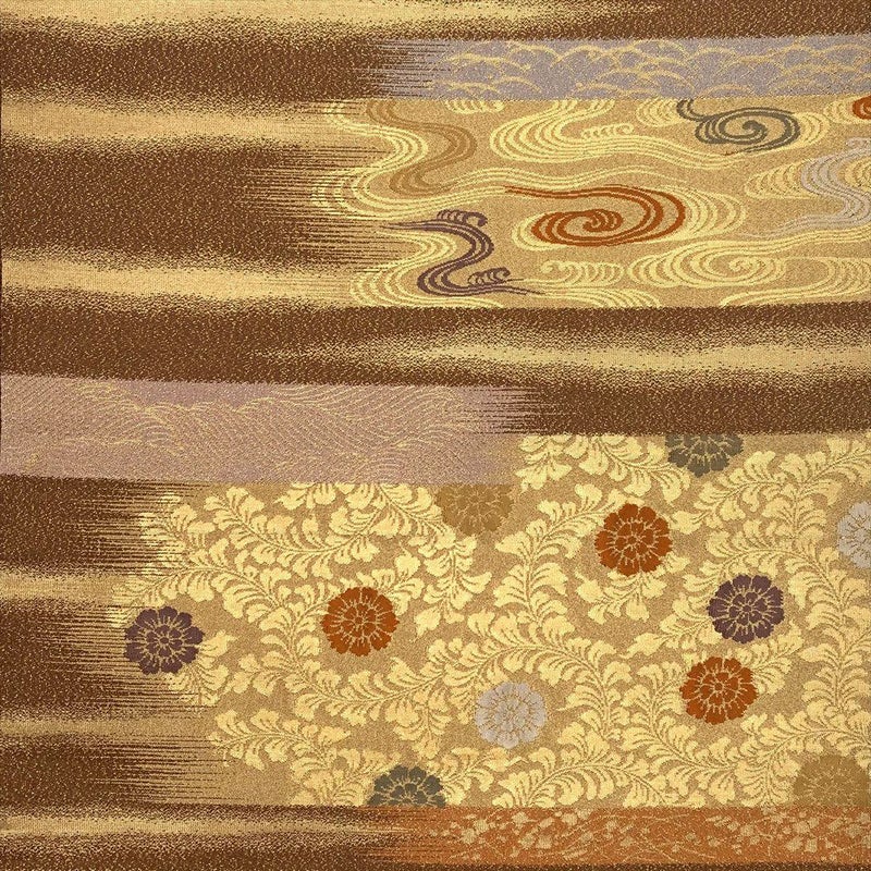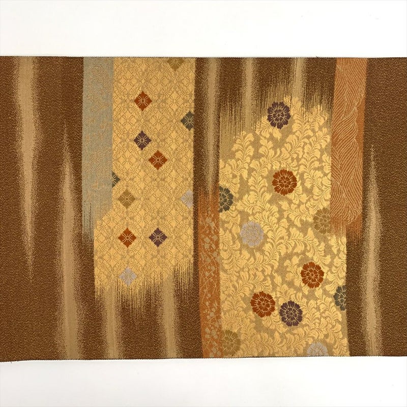 (中古)袋帯 茶地 フォーマル 金糸 古代裂霞文