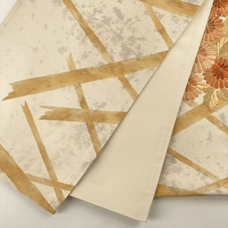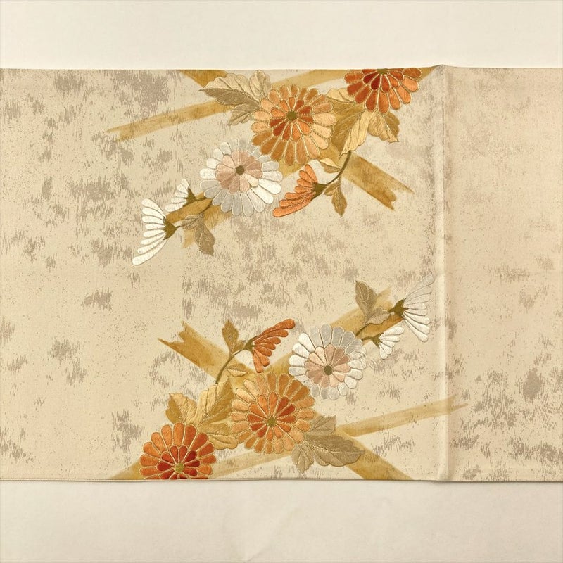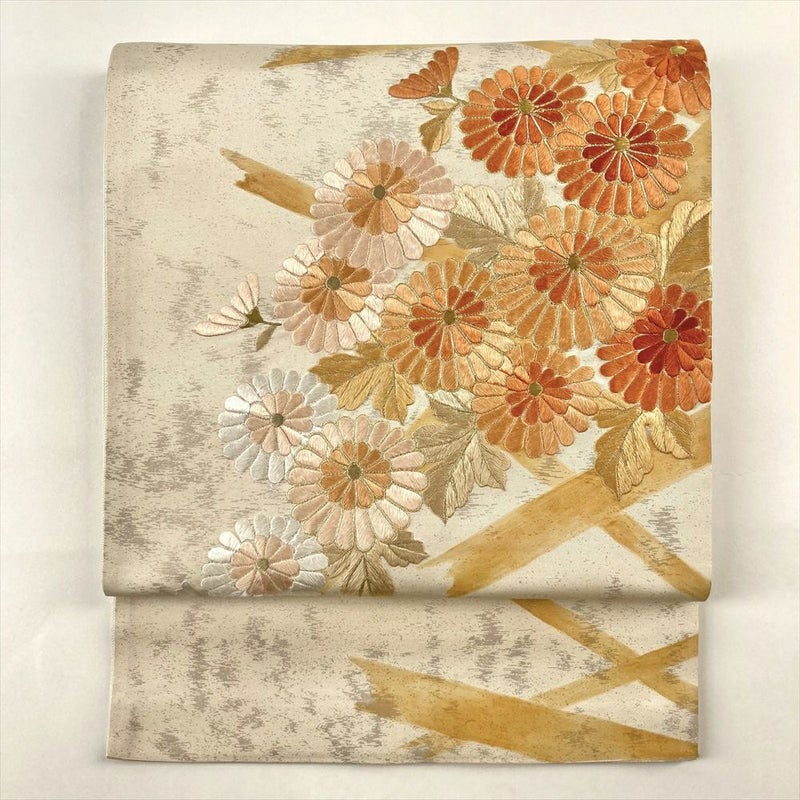 (中古)袋帯 生成り セミフォーマル カジュアル 六通柄 金糸 刺繍 菊