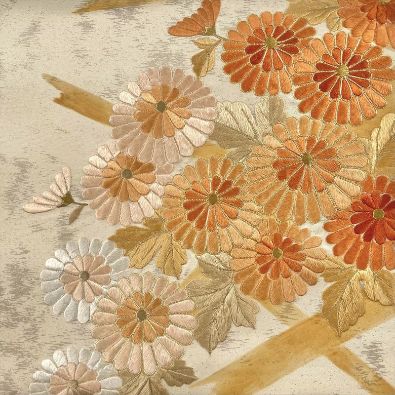 【色柄】生成り セミフォーマル カジュアル 六通柄 金糸 刺繍 菊
