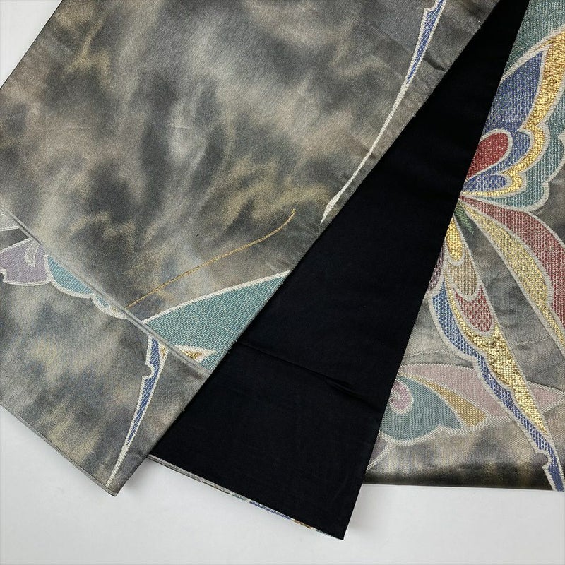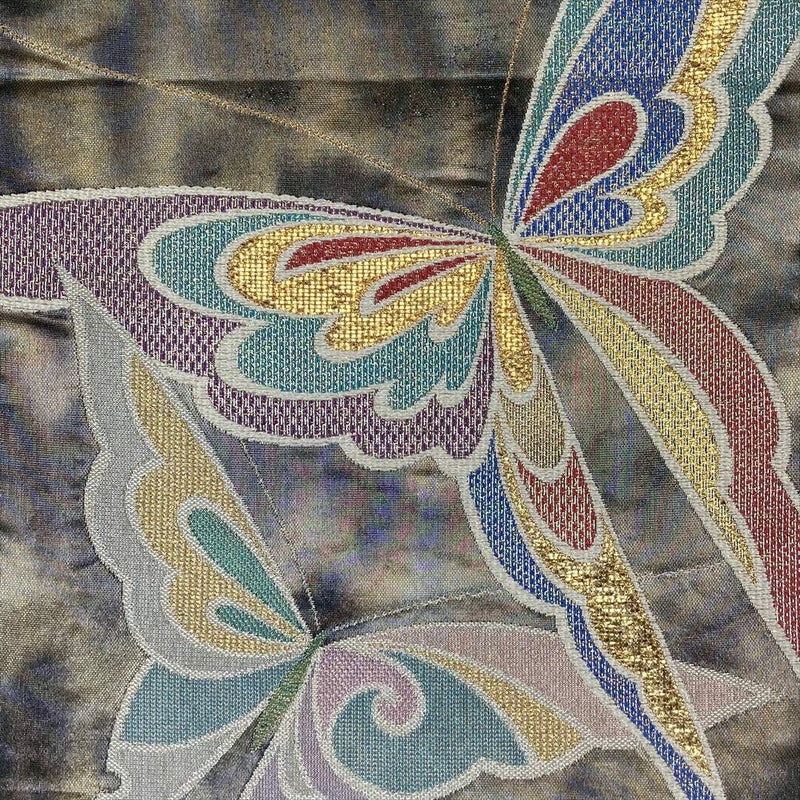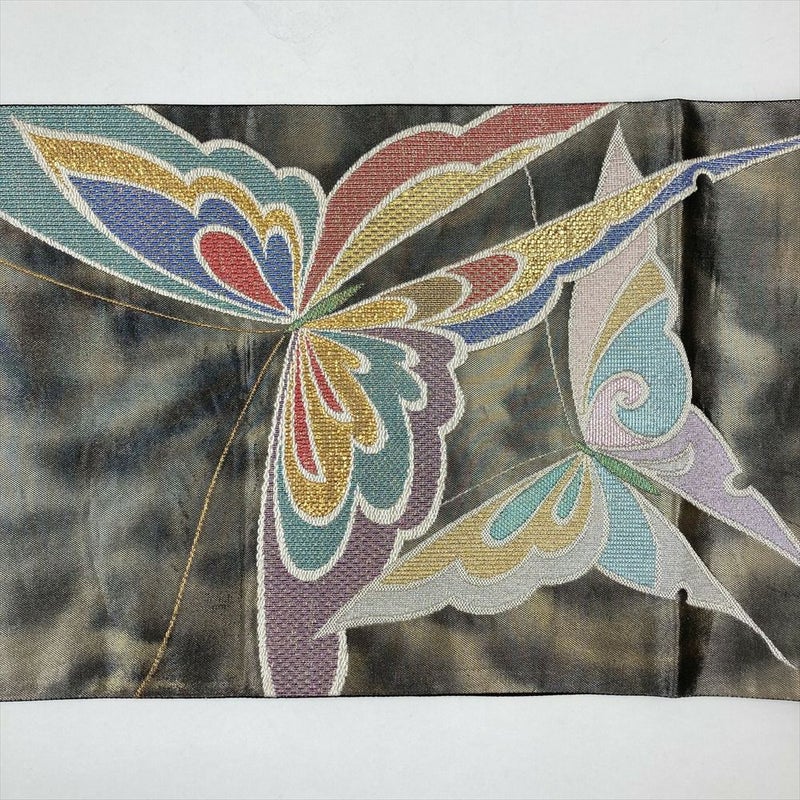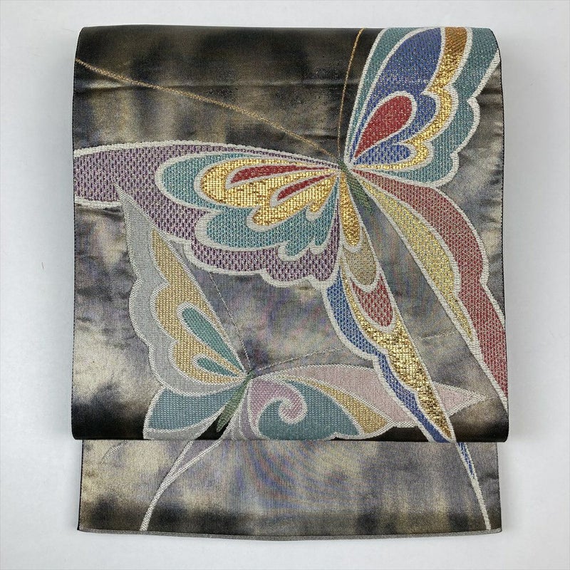 (中古)袋帯 黒 フォーマル セミフォーマル 六通 青銅箔 マルチカラー 蝶