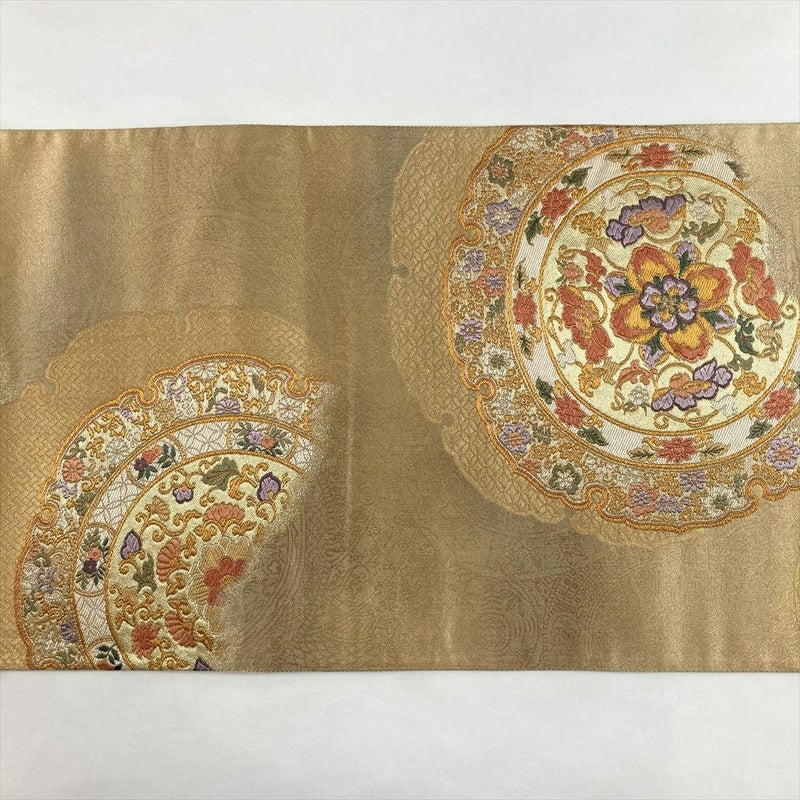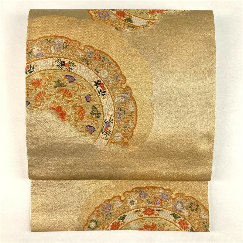 (中古)袋帯 金 セミフォーマル フォーマル 六通 織り 鏡文 絹