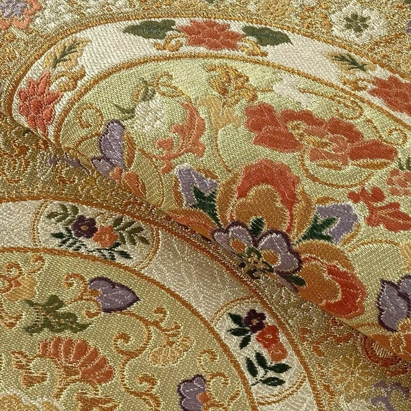 鏡文が持つ格調高い意匠と、上品にきらめく金糸使いが、留袖や訪問着を一層引き立てるフォーマル袋帯です。
