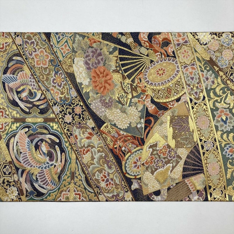 【色柄】金 フォーマル 金糸 斜め取り 格天井 鳳凰 蔓花 扇子 楽器文