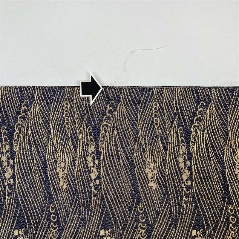 こちらの帯は金銀や白、多色使いの糸で華やかな雰囲気を演出します。色留袖、訪問着などにおススメです。目立つ汚れはないのですが若干の使用感があります。リユース品としては良い状態のお品となっております。手先からお太鼓に締めジワがあります。耳のかがりが一部ほつれています。