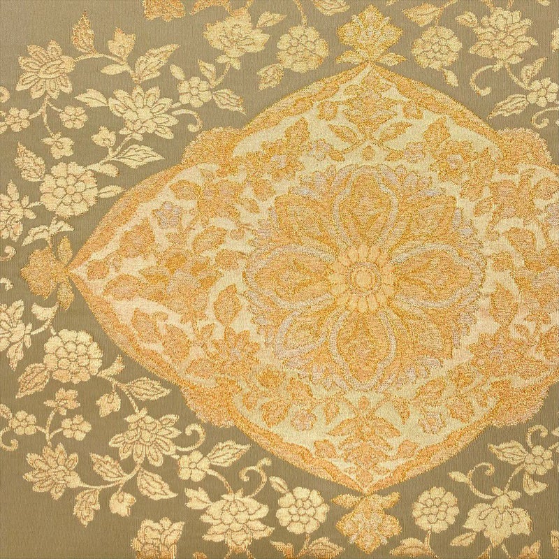 ベージュの地に金色の文様のみの、シンプルで上品、そして華やかな帯です。通年お召しいただけます。フォーマル、セミフォーマルシーン向きです。お好きなコーディネートをお楽しみくださいませ。
