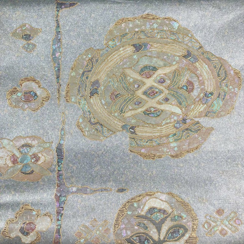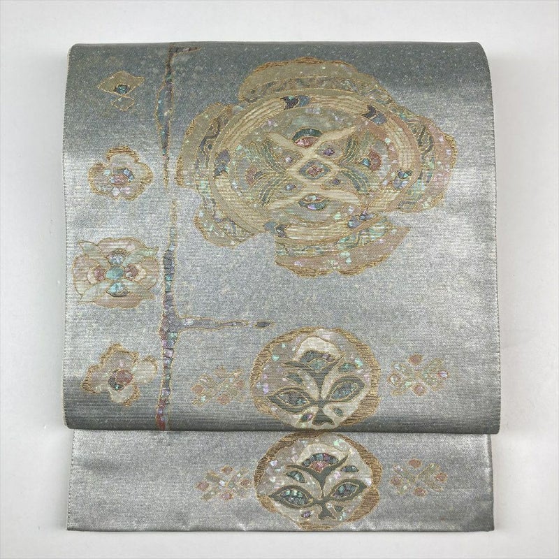 (中古)袋帯 銀 フォーマル セミフォーマル 六通柄 螺鈿 オリエンタル