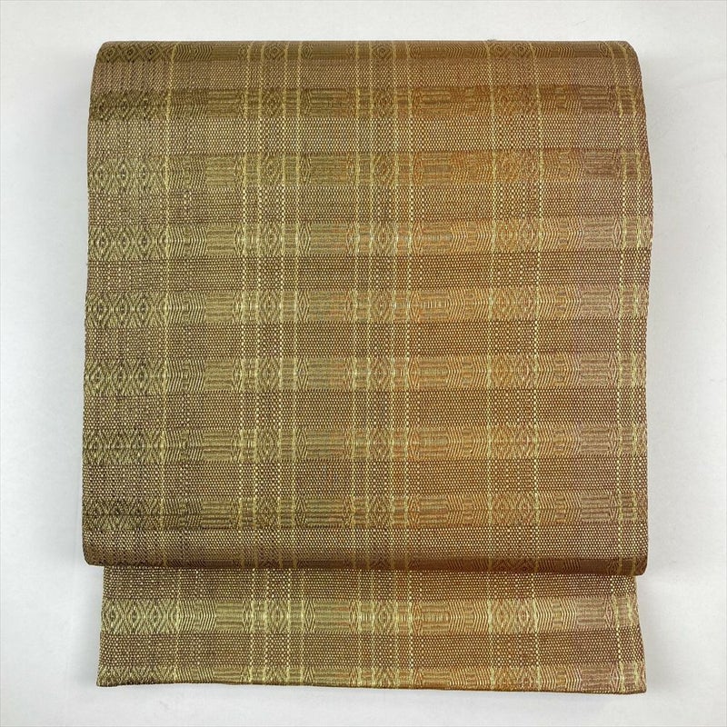 (中古)袋帯 金 フォーマル セミフォーマル 全通 透かし織 間道風 菱柄