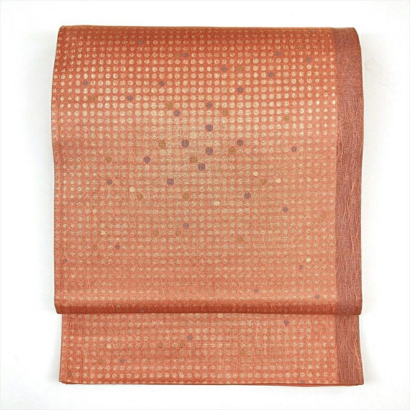 (中古)袋帯 ピンク セミフォーマル カジュアル 金糸 すくい織 水玉