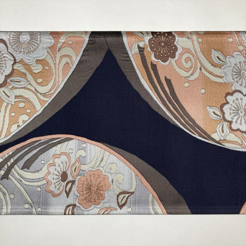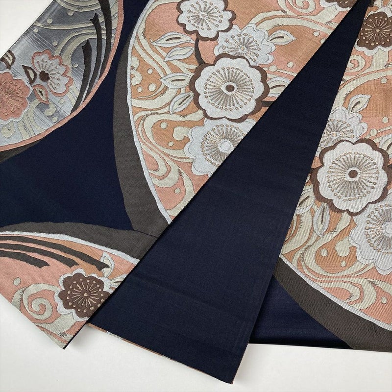 (中古)袋帯 紺 フォーマル 六通柄 流水 桜