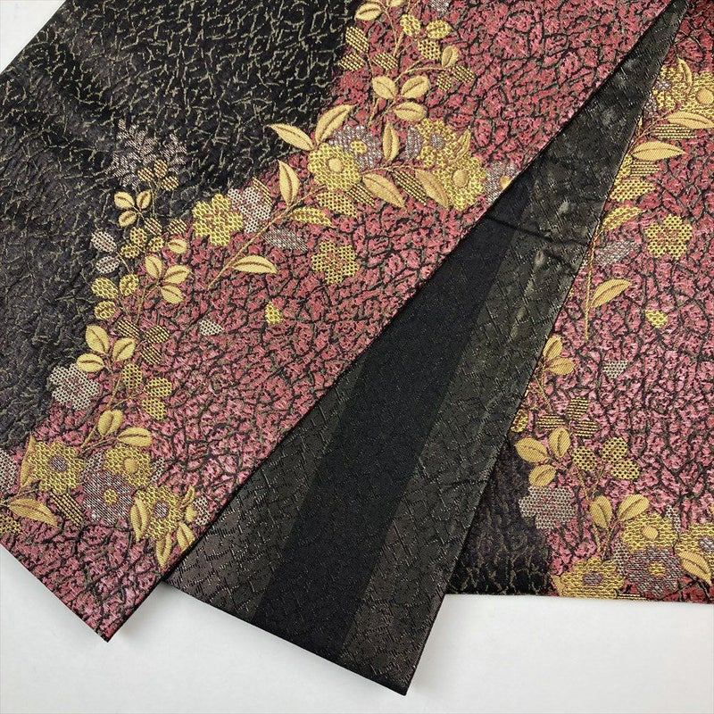 【色柄】黒 セミフォーマル カジュアル 六通 ふくれ織り 金糸 銀糸 干割れ 四季花