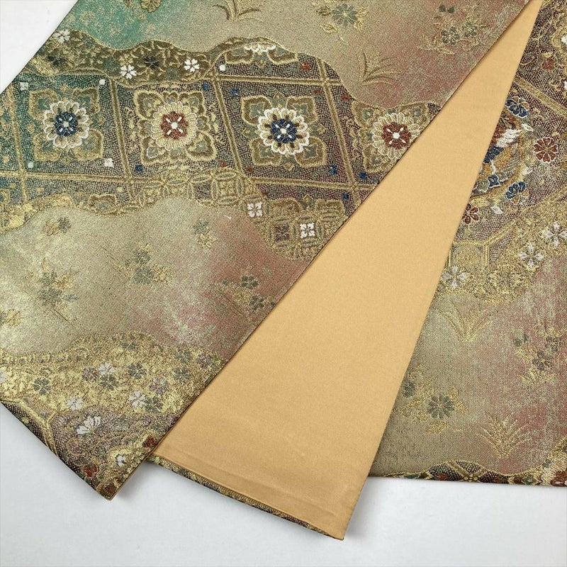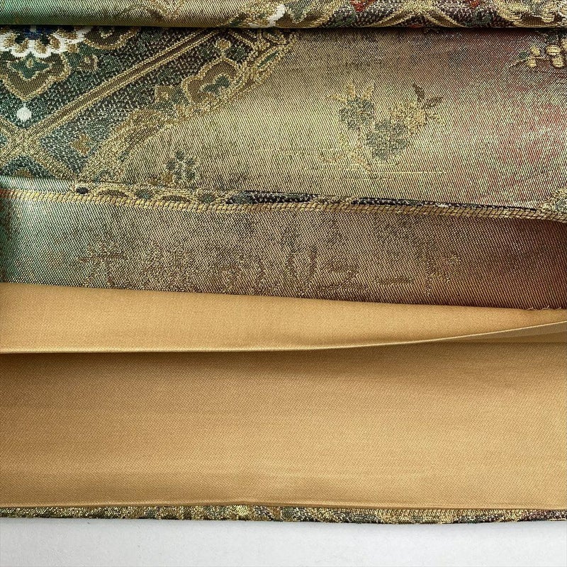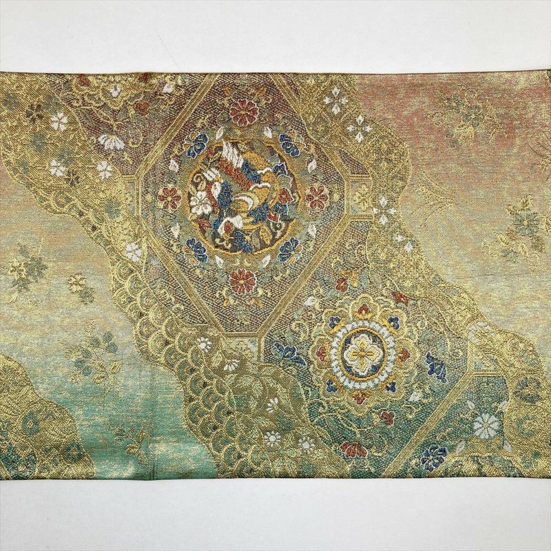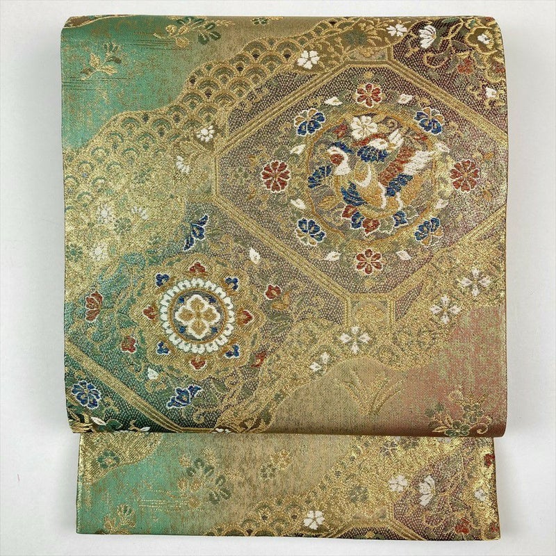 (中古)袋帯 金 フォーマル セミフォーマル 六通 金糸 道長取り 蜀江華文 菱華文 鳳凰 四季花