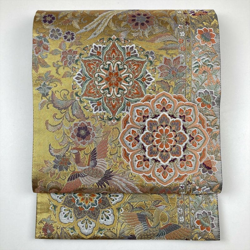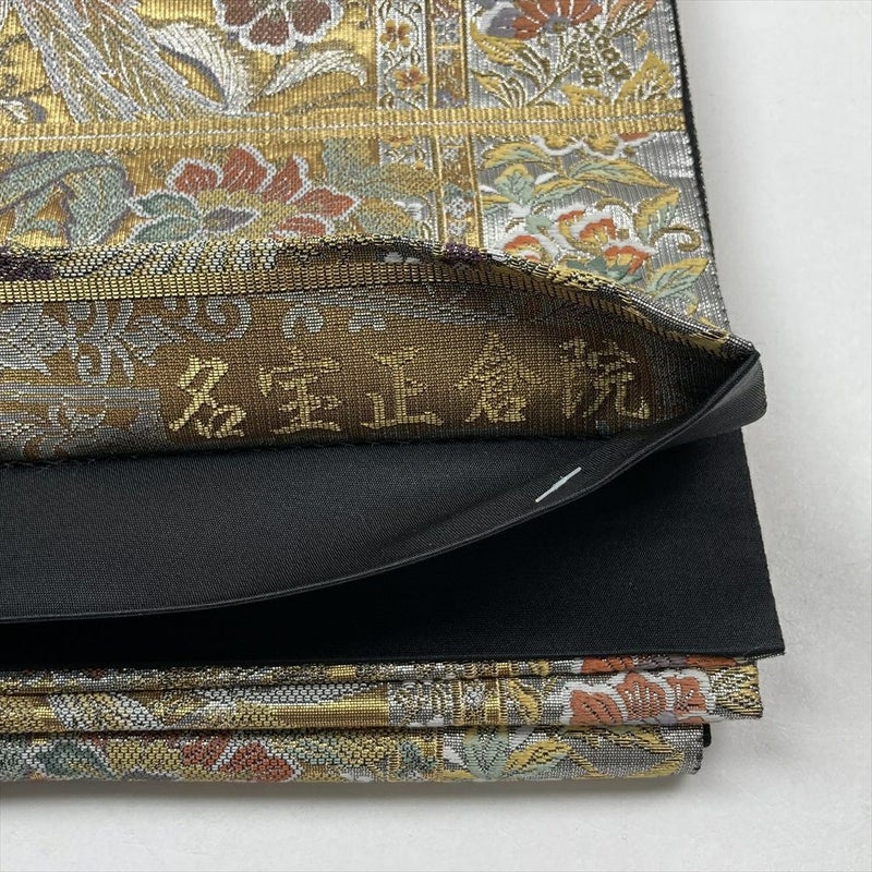 (中古)袋帯 金 フォーマル 六通 金糸銀糸 正倉院柄 本金箔斜子綴