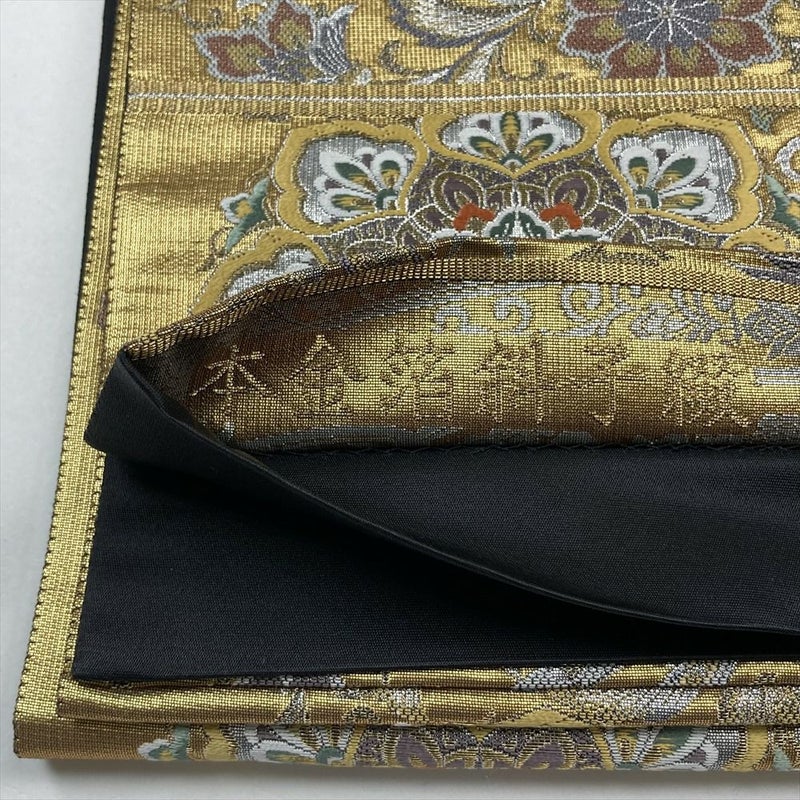 フォーマル向きの帯になります。成人式・結婚式や披露宴・パーティーなどフォーマルのお席にお使いいただけます。たれ裏地に文字あり。