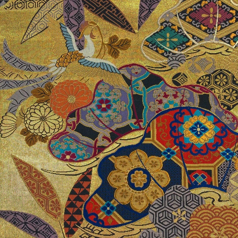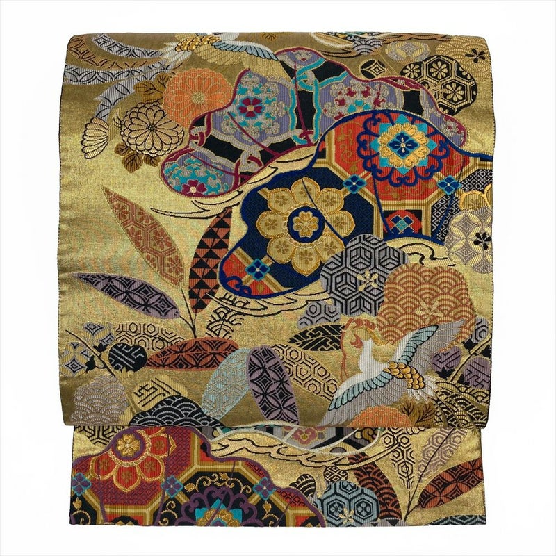 フォーマル向きの帯になります。成人式・結婚式や披露宴・パーティーなどフォーマルのお席にお使いいただけます。たれ裏地に文字あり。