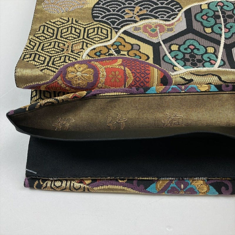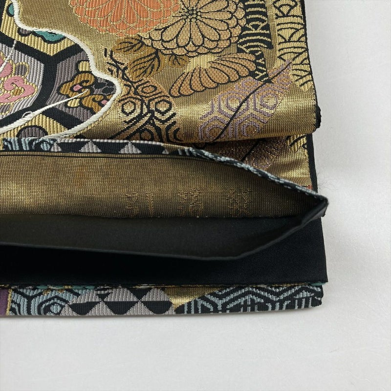 (中古)袋帯 黒 金 フォーマル 金糸 松竹梅 四季花 正倉院柄