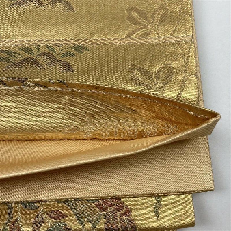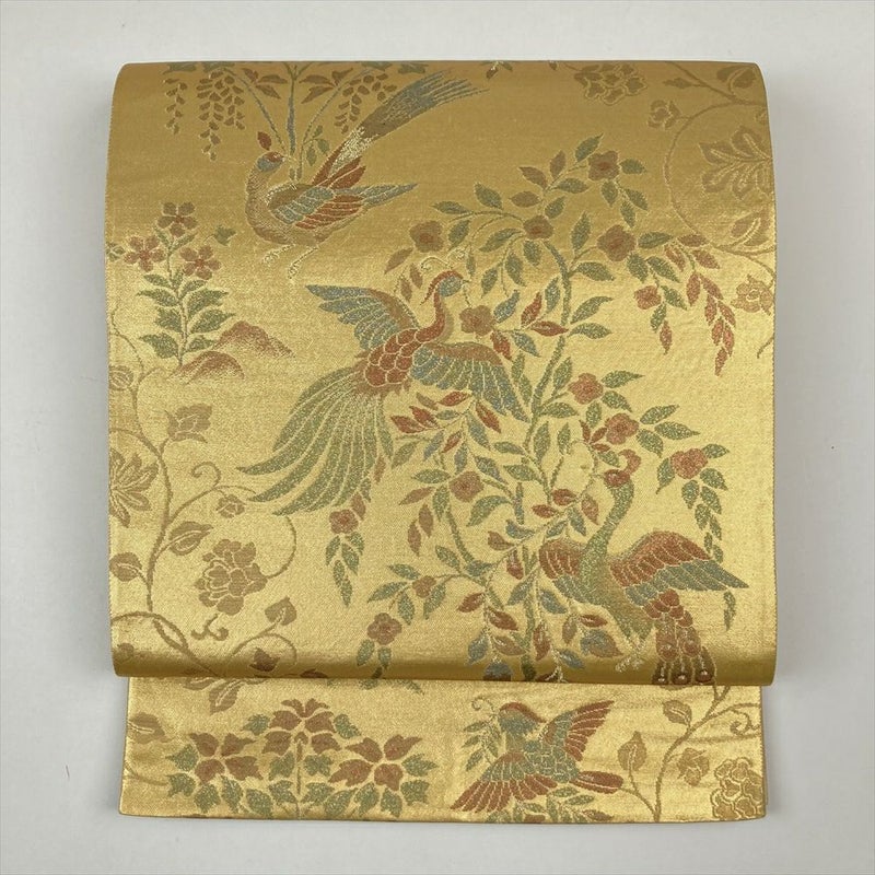 (中古)袋帯 金 フォーマル セミフォーマル 金糸 銀糸 天平模様 鳥 四季花 六通