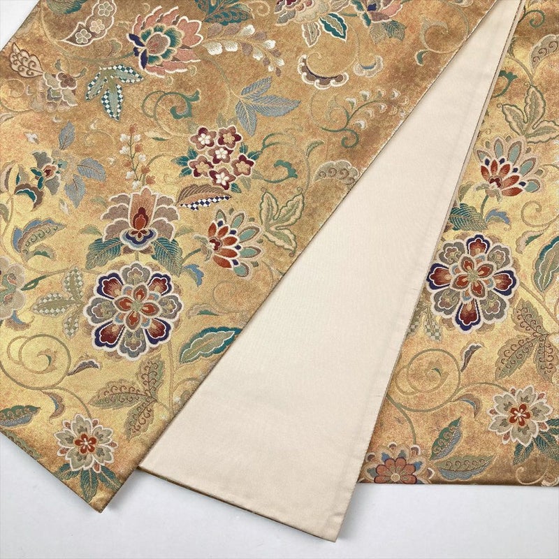 (中古)袋帯 金 フォーマル セミフォーマル 六通 金糸 唐花 繧繝