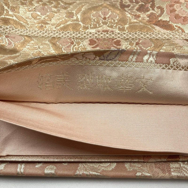 (中古)袋帯 サーモン フォーマル セミフォーマル 金糸 裂取り 宝華文 六通