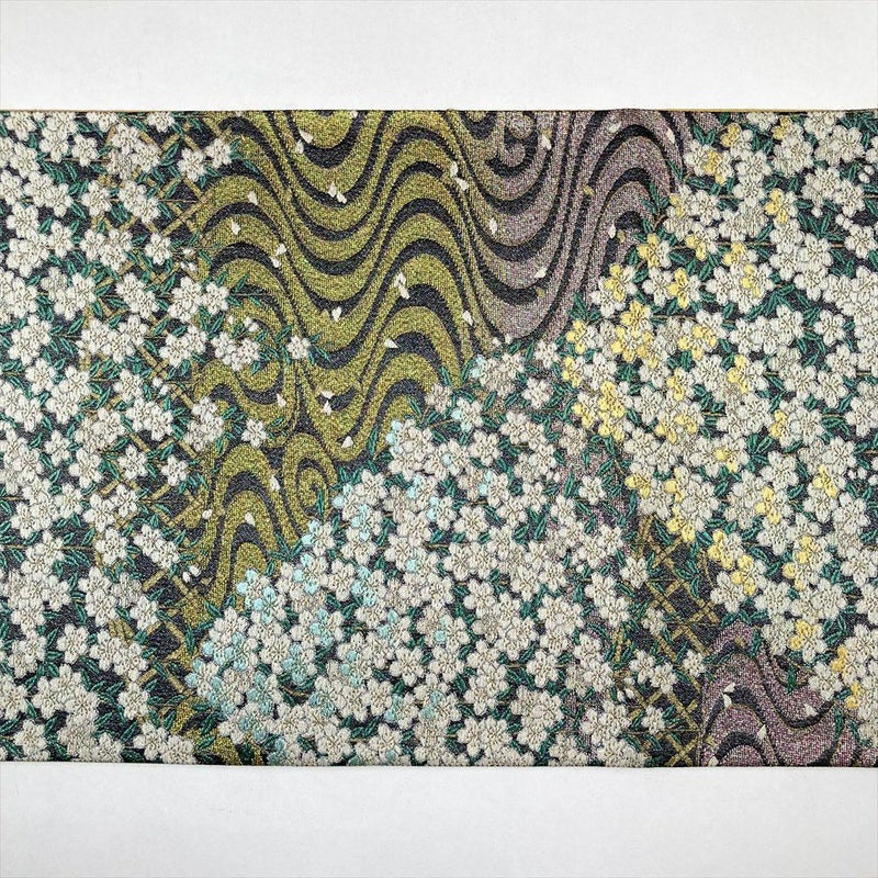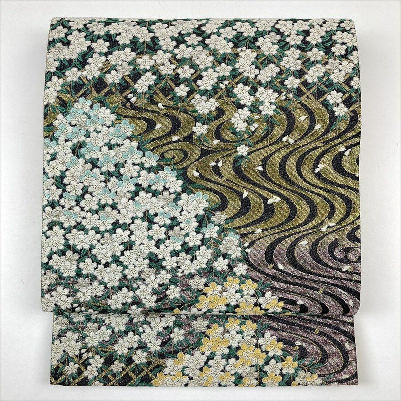 (中古)袋帯 黒 フォーマル セミフォーマル しだれ桜 流水 六通