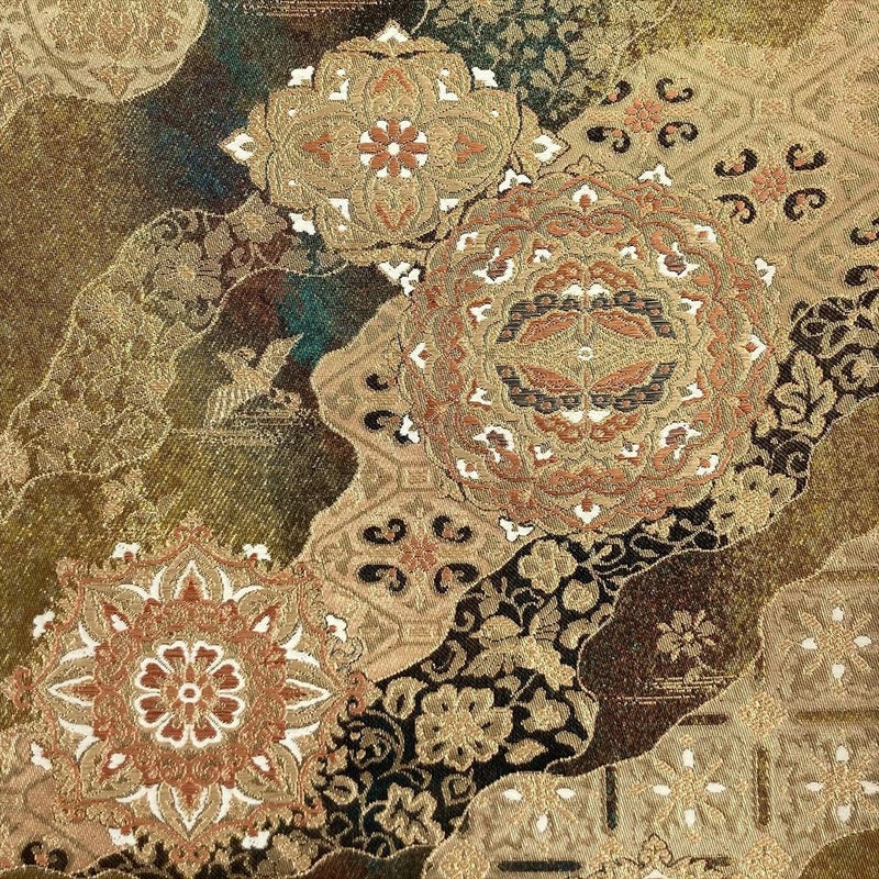 フォーマル、セミフォーマル向きの帯になります。成人式・結婚式や披露宴・パーティーなどフォーマルのお席にお使いいただけます。中無地に折りジワと締めジワが見られます。手先からお太鼓にかけて折りジワが見られます。