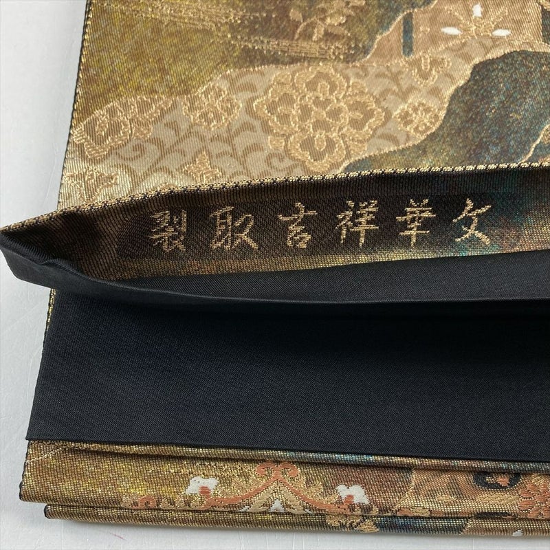 (中古)袋帯 金 黒 フォーマル セミフォーマル 金糸 道長取り 華文 六通