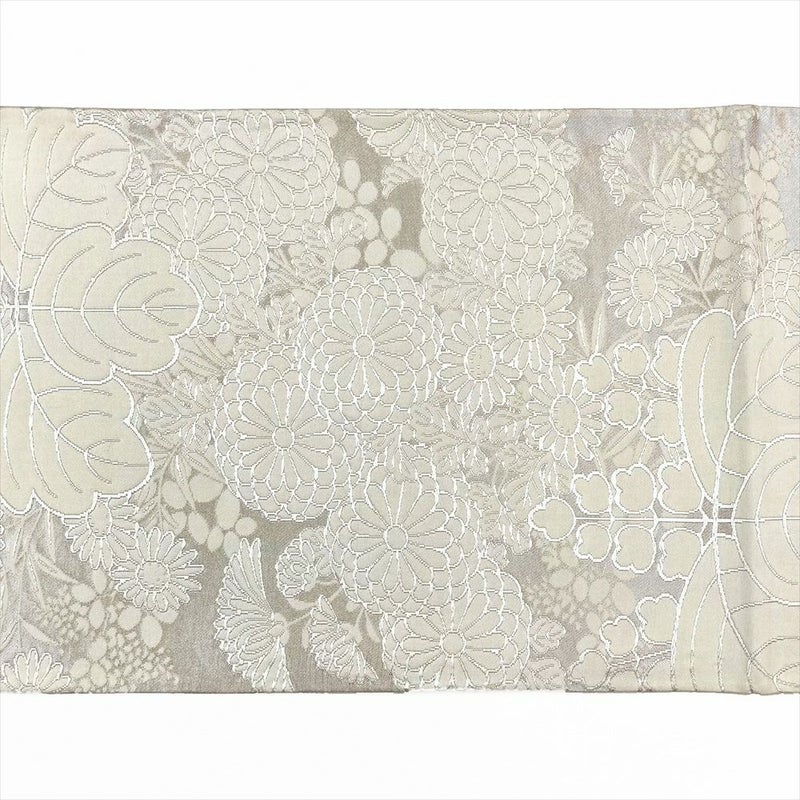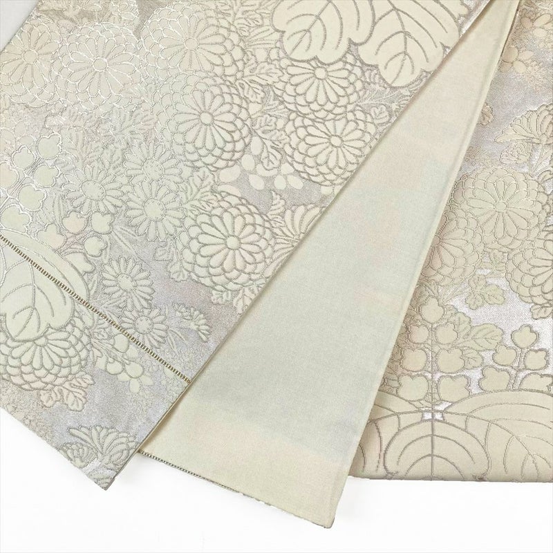 (中古)袋帯 白 フォーマル セミフォーマル 六通 銀糸 桐 菊