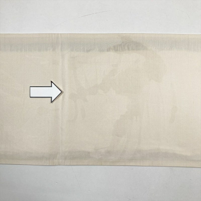手先に折りシワ、中無地に汚れ、裏地全体にシミ(液体が流れたような)が見られます。
