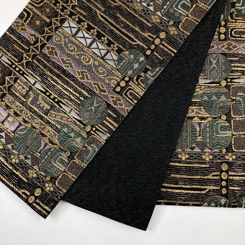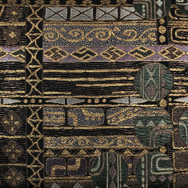 【色柄】黒 セミフォーマル カジュアル 六通 金糸 銀糸 抽象柄 幾何学