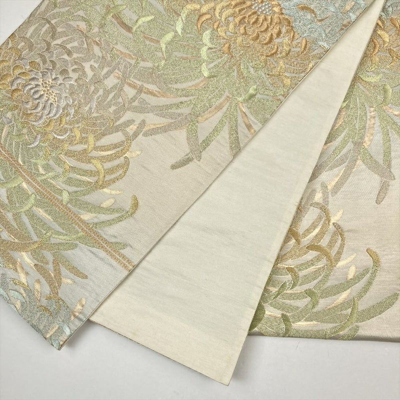(中古)袋帯 生成り フォーマル セミフォーマル 六通 金糸 銀糸 乱菊