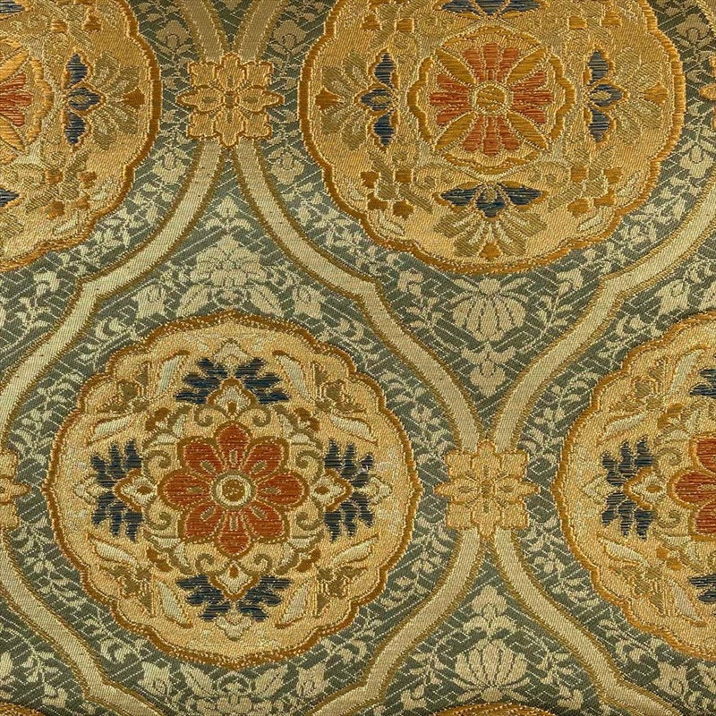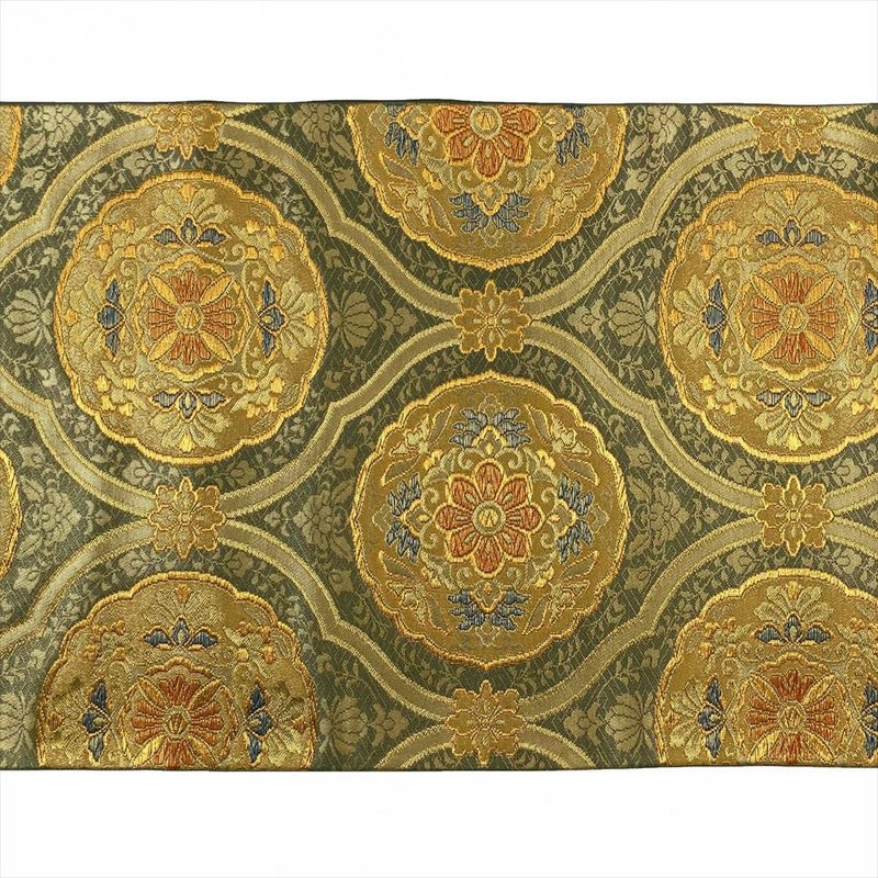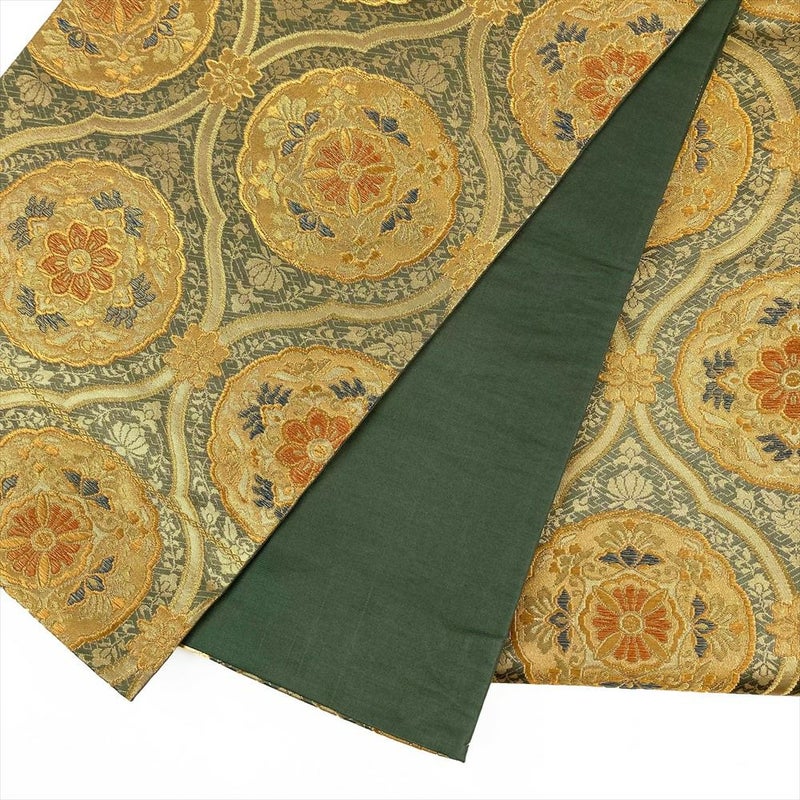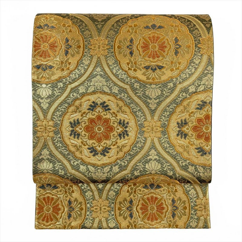 (中古)袋帯 灰緑 フォーマル 六通 金糸 華文 立涌 オリエンタル