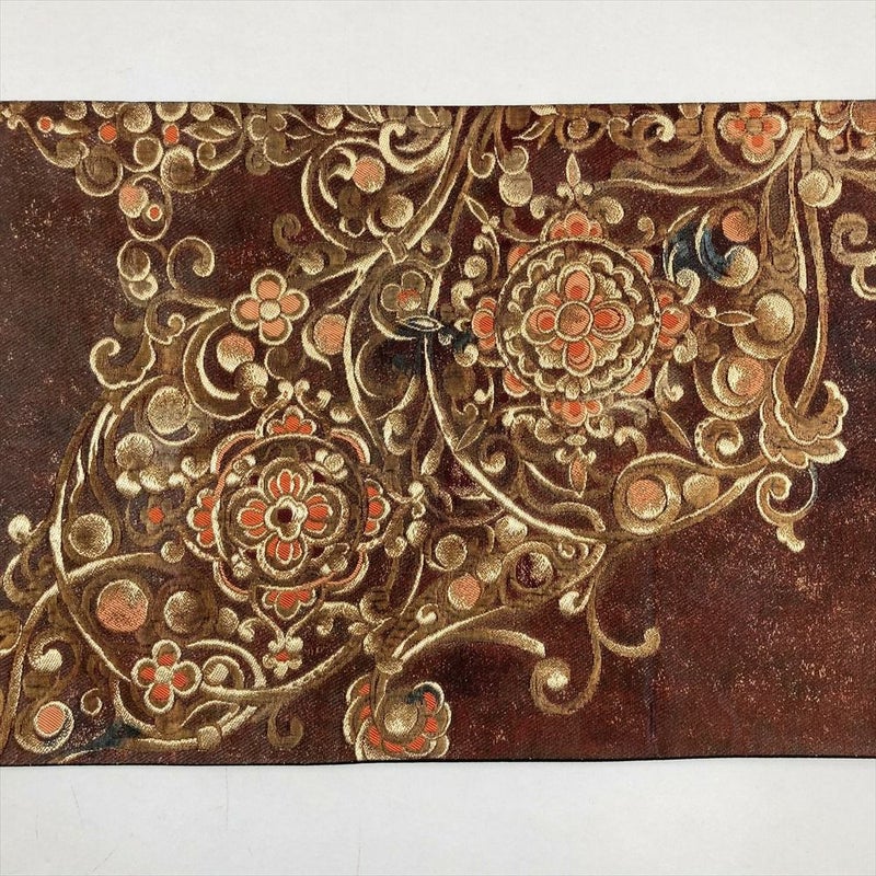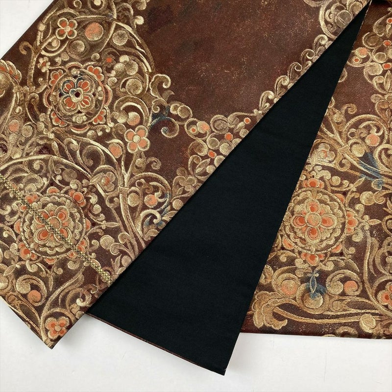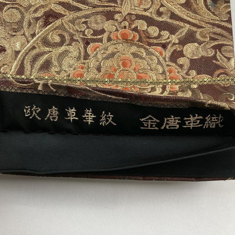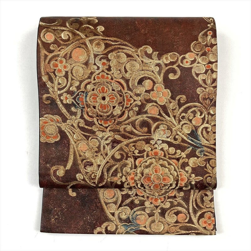 (中古)袋帯 茶 フォーマル 六通 金糸 華文 蔓花 オリエンタル