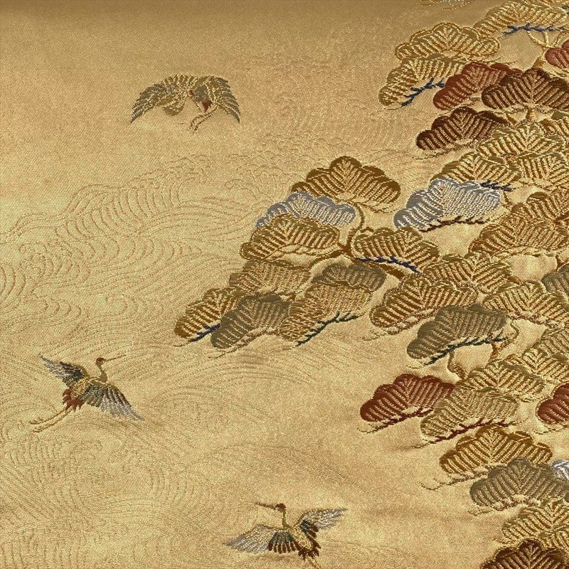 【色柄】金 フォーマル 六通 切箔 鶴 松 波