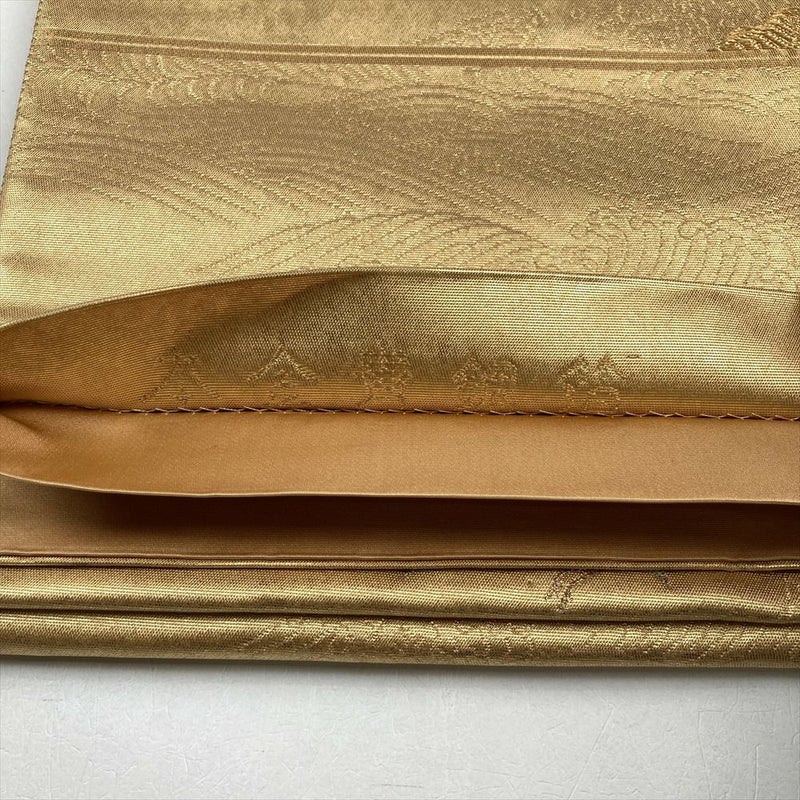 (中古)袋帯 金 フォーマル 六通 切箔 鶴 松 波