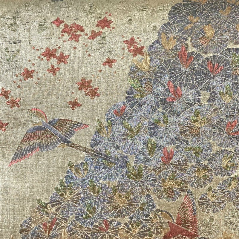 【色柄】銀 セミフォーマル 六通 金糸 銀糸 色糸 鳥 花