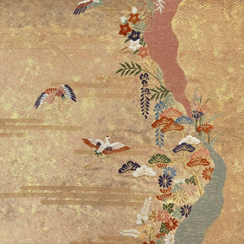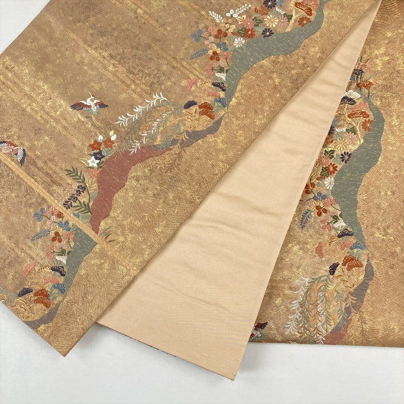 【色柄】金 ベージュ フォーマル セミフォーマル 六通 切箔 金糸 色糸 道長取り 四季花 鶴 波
