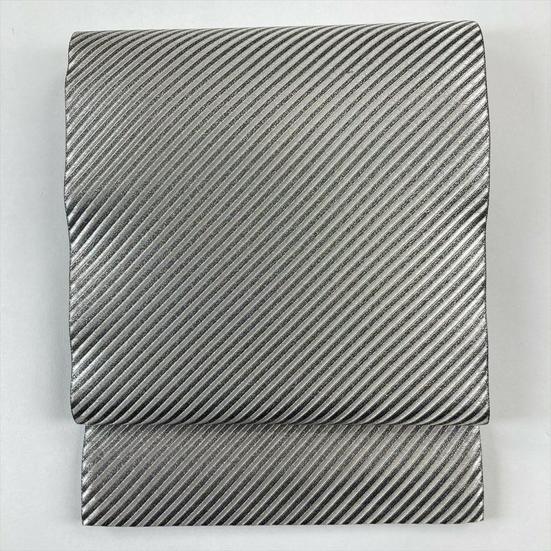 (中古)袋帯 金 黒 銀 グレー フォーマル セミフォーマル 全通 両面 リバーシブル 切箔 金糸 銀糸