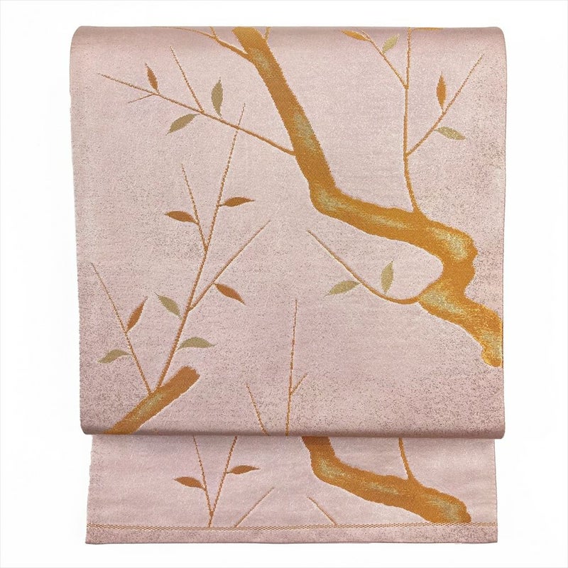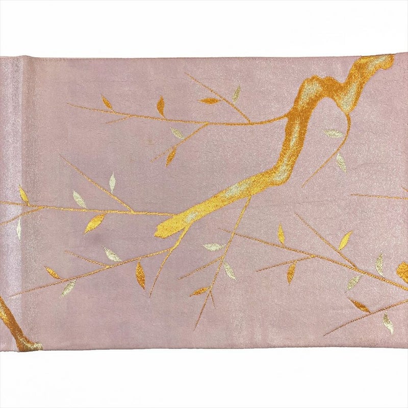 (中古)袋帯 ピンク フォーマル セミフォーマル 六通 切箔 枝葉